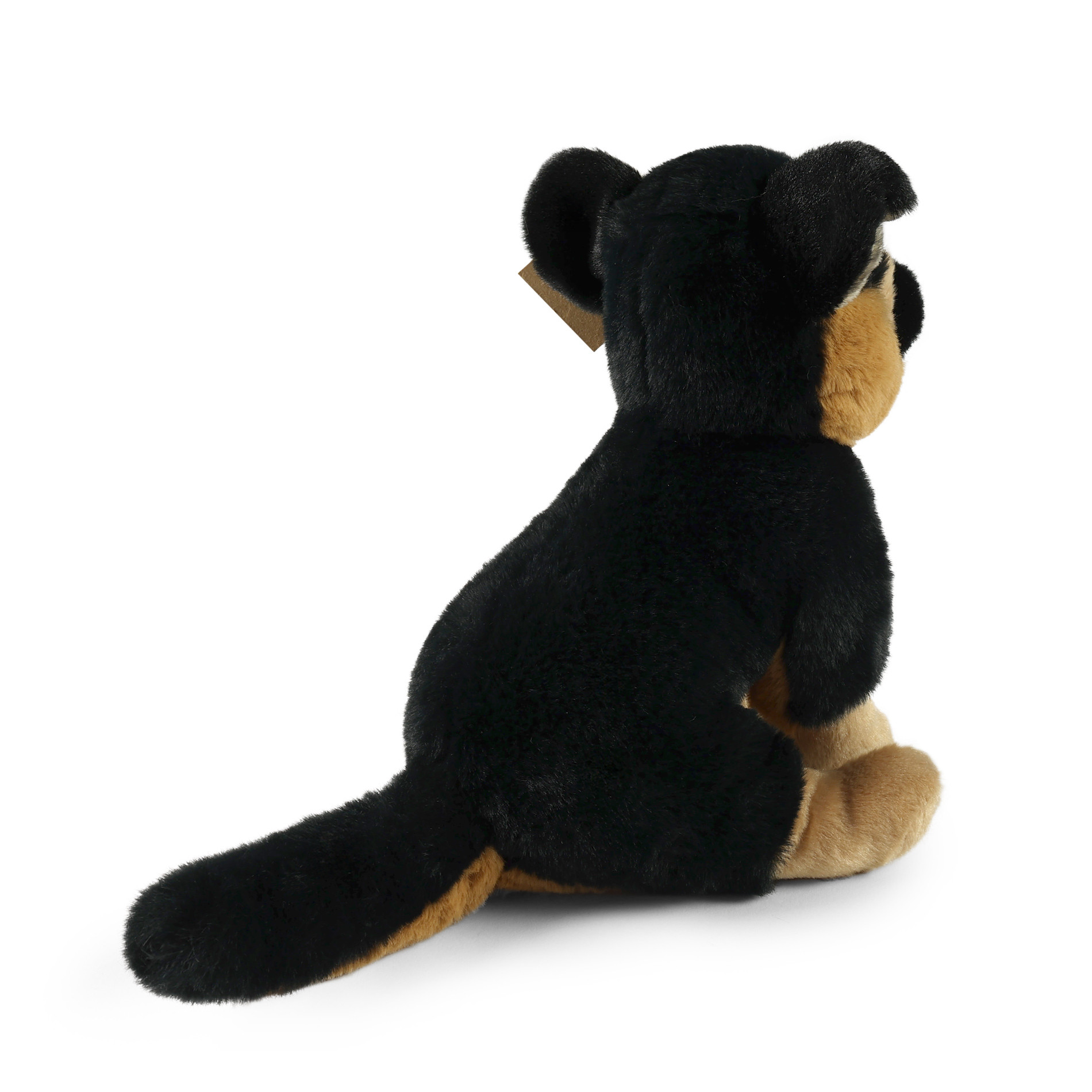 SOFT COLLECTION je nová kolekce plyšových hraček z nového, ještě jemnějšího materiálu. Plyšový pes rasy německý ovčák měří 23 cm a díky těm nejkvalitnějším materiálům se řadí do Exkluzivní kolekce plyšových hraček značky Rappa. Díky ručnímu zpracování každého kusu navíc vypadá jako živý. Proč označení ECO-FRIENDLY? Rappa si je vědoma všech dopadů na životního prostředí, zaměřuje se na udržitelnost a omezení používání plastů na minimum. Proto je výplň hraček vyrobena z recyklovaných materiálů, zejména PET lahví. Ta je však zcela nezávadná a vhodná i pro děti od narození. FUN FACT: Věděli jste, že němečtí ovčáci jsou extrémně inteligentní i učenliví a patří mezi tři nejchytřejší psí plemena na světě?