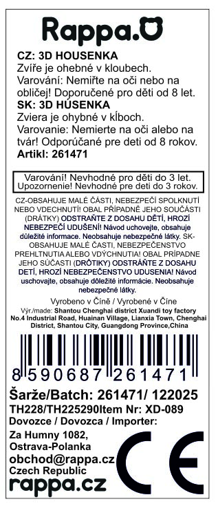 Originální hračka v podobě housenky o délce cca 10 cm zaujme svým originálním vzhledem i skvělou pohyblivostí. Díky konstrukci z jednotlivých dílků lze housenku trochu ohýbat a tvarovat. Atraktivní provedení s jemným kovovým nádechem dodává hračce jedinečný a lehce magický vzhled. Skvěle se hodí jako žertovinka, dekorace nebo doplněk pro hravé chvíle.