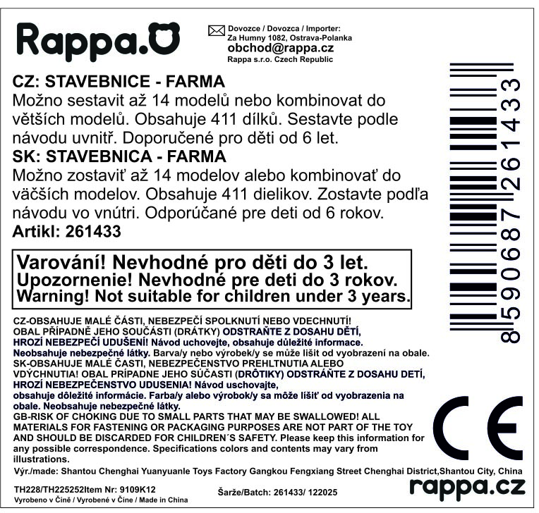 Vítejte na farmě plné zábavy! Z této kreativní stavebnice lze sestavit až 12 různých druhů farmářských zvířátek, takže si děti mohou vytvořit vlastní hospodářství a pokaždé postavit jiné zvířátko. Stavebnice je doporučena pro děti od 6 let a nabízí hodiny smysluplné zábavy při stavění i následné hře na farmu. Díky kompatibilitě s jinými stavebnicemi nabízí neomezené možnosti kombinací a rozšiřování.