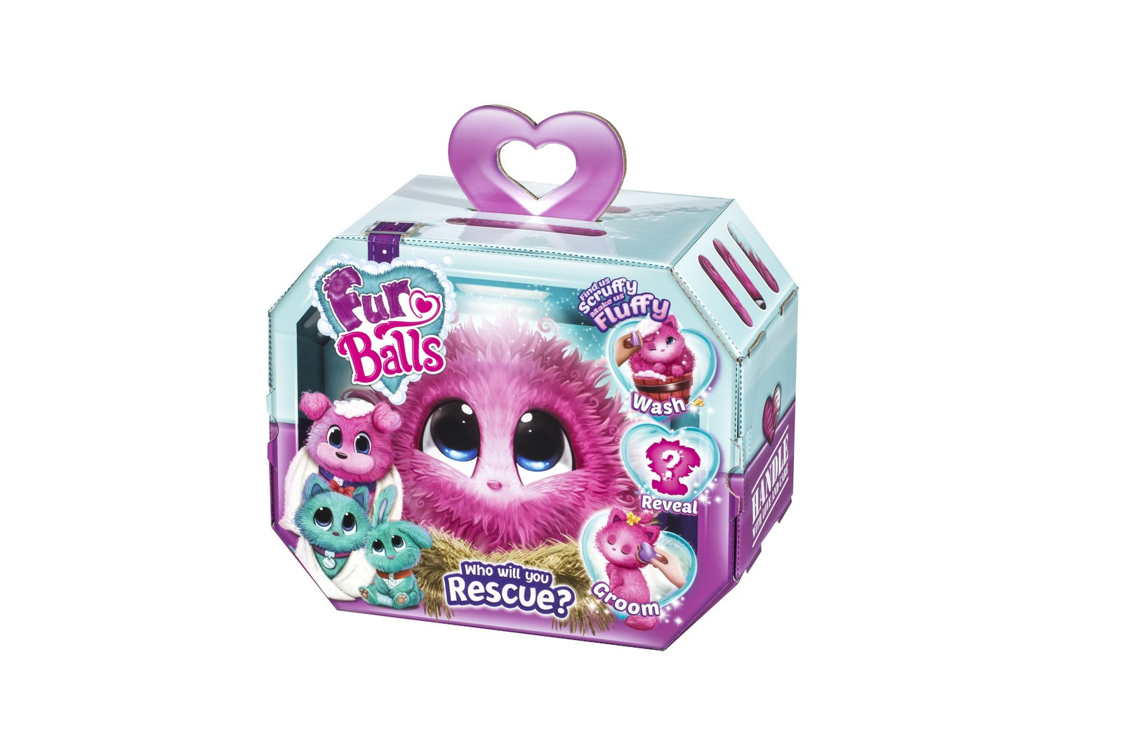 3 druhy (králíček, kočka, pes) v růžové barvě. Aby jsi zjistit jaké zvířátko se skrývá v plyšovém chuchvalci, je potřeba ho nejprve vykoupat a učesat. Obal je možné použit jako domeček. V balení najdete: plyšového mazlíčka, kartáček ve tvaru srdíčka, sponku a certifikát o záchraně.