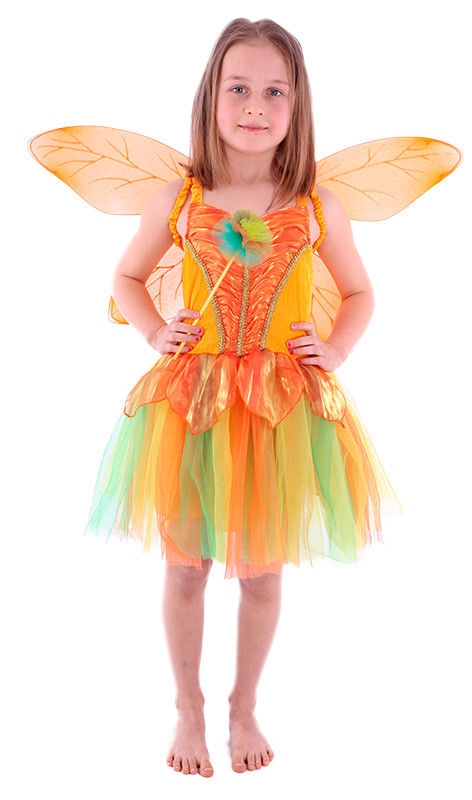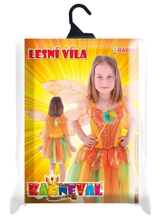 Veselý karnevalový kostým s motivem lesní víly v oranžovo-zelené barvě a velikosti S je určen pro holčičky ve věkovém rozmezí 4-6 let (110-116 cm). Balení obsahuje křídla, hůlku a šaty. Staň se hvězdou karnevalového večírku díky tomuto kostýmu a ohrom tak všechny své kamarády!