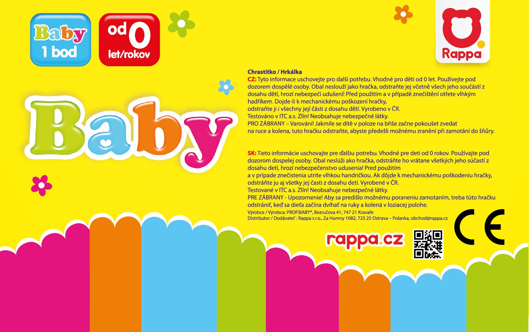 Veselé barevné chrastítko/kousátko se dvěmi plastovými přívěšky je určeno pro ty nejmenší. Tento praktický kousek navíc rozvíjí motorické a zrakové dovednosti děťátka. Mix barev, nelze vybrat konkrétní druh ani barvu, dodáváme dle skladové dostupnosti.