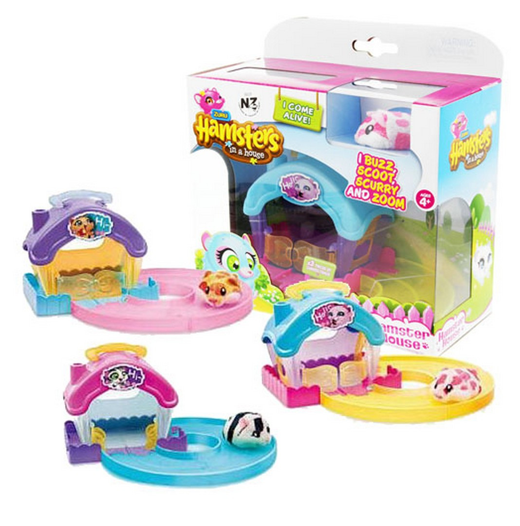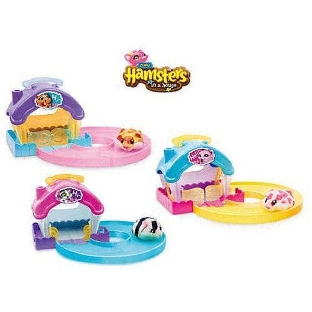 Malý jezdící křeček s domečkem. Domečky se dají propojovat a můžeš si postavit vlastní vesničku. Křeček jezdí po cestičkách. Více barevných provedení. Všechny sady jsou kompatibilní. Paráda!