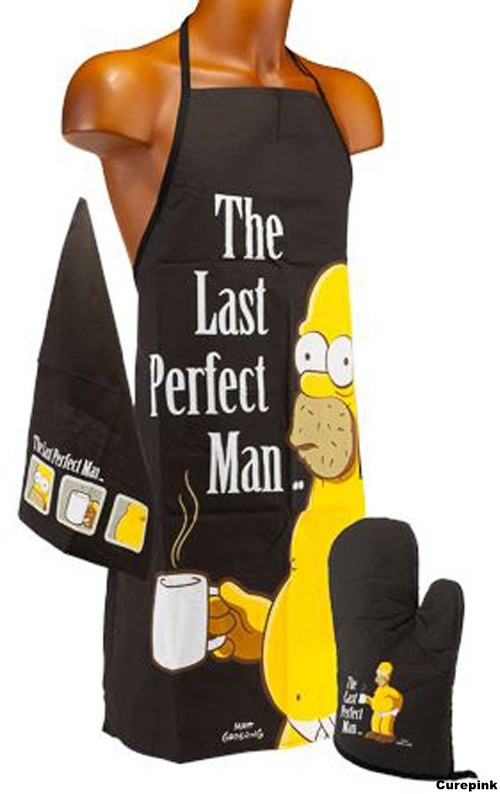 Kuchyňský set s grafikou postavy Homera Simpsona z animovaného seriálu Simpsonovi. Nápis The Last Perfect Man. Oficiální dárkový set z katalogu produktů s logem, postavičkami a grafikou z populárního animovaného seriálu The Simpsons. Zboží je legálně licencováno a prodáváno se souhlasem vlastníků licenčních práv. Set obsahuje kuchyňskou zástěru, utěrku a chňapku. Chňapka disponuje poutkem na zavěšení. Rozměry chňapky: délka: 32cm šířka: 17cm Rozměry zástěry: šířka: 70 cm (šňůrka 80cm) délka: 85cm Rozměry utěrky: 52cm x 31cm Rozměry balení: 19 x 32 cm Materiál: 100% bavlna
