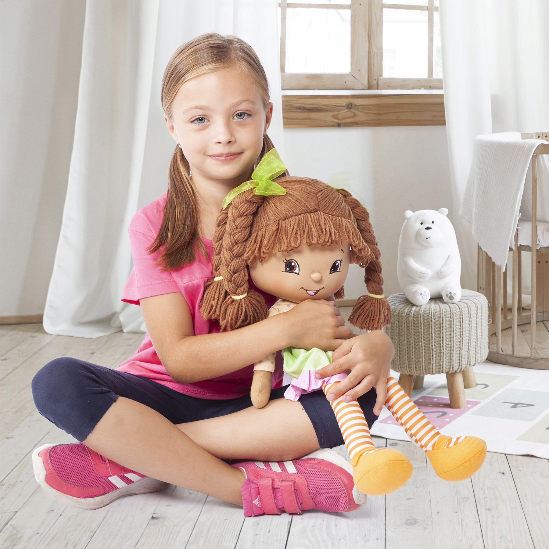 Rozkošná hadrová panenka s copy je vysoká 50 cm. Panenka má hnědé vlásky a krásné šatičky. A co ty? Už máš svou hadrovou panenku? Panenka je balena na krásné kartě a je tak vhodná i jako dárek.