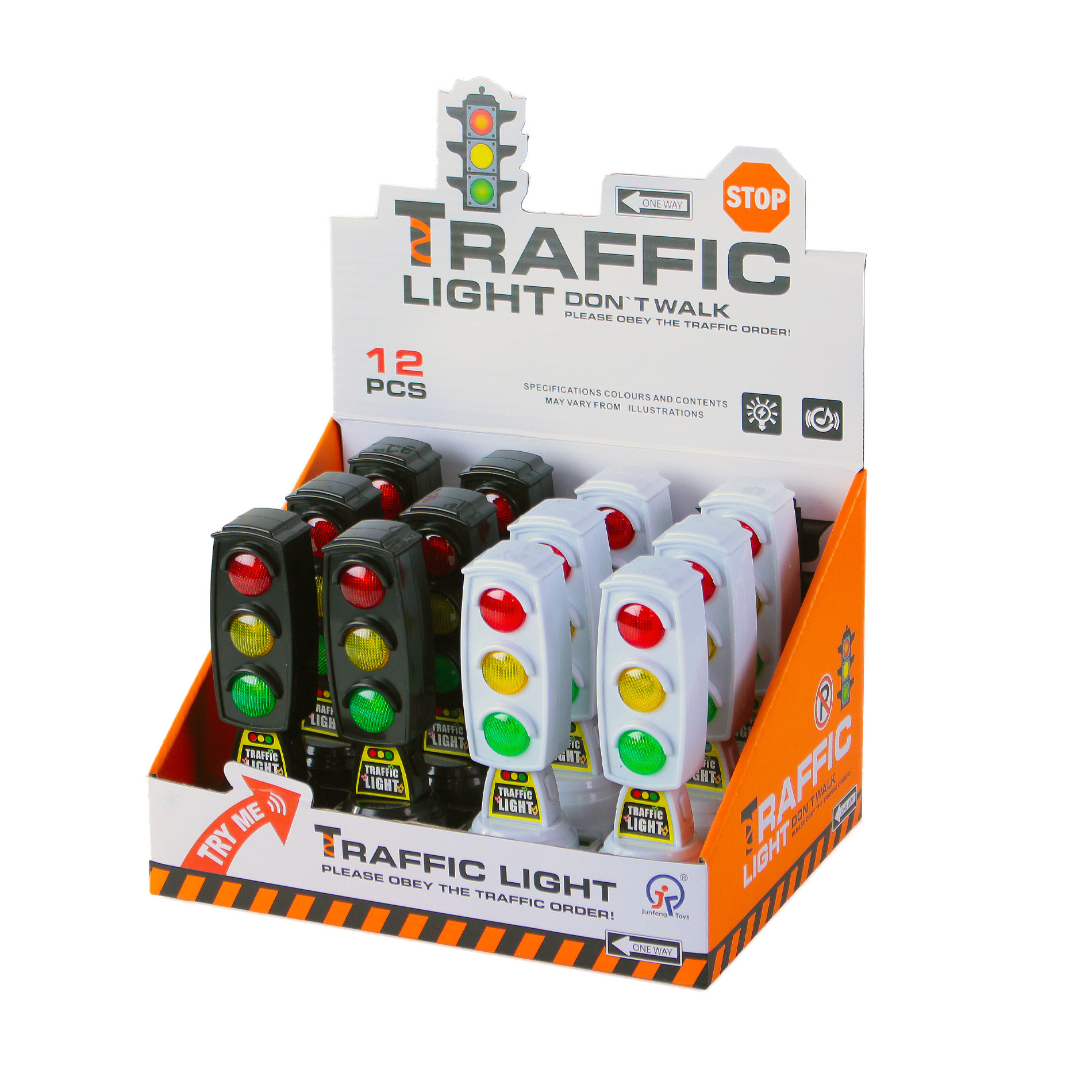 Senzační semafor se světelným a zvukovým efektem. Semafor vyžaduje použití 3 ks baterií typu LR44, které jsou součástí výrobku. Výška semaforu je cca 13 cm. Tlačítko na pravé straně spustí světelnou signalizaci semaforu a zvuk. Zmáčknutím tlačítka na levé straně začnou hrát různé melodie spolu se světelným efektem.