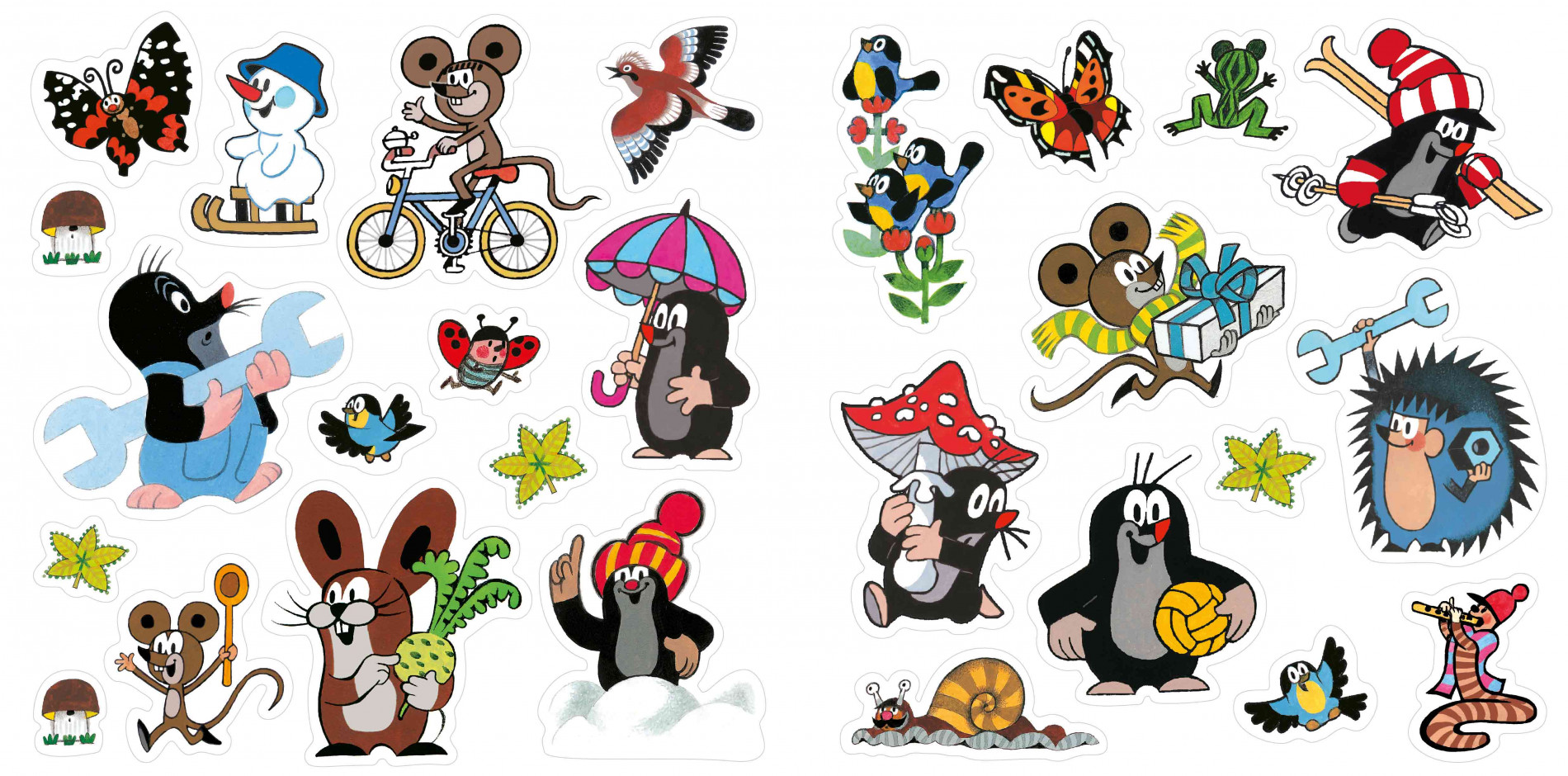 Lesklá obálka, 9 lesklých vnútorných strán a 2 strany lesklých opakovateľne snímateľných samolepiek, v tomto produkte si deti pomocou samolepiek zostavujú obrázky, tým rozvíja priestorové vnímanie a svoju fantáziu, taktiež pomocou samolepiek dopĺňajú hlavolamy a kvízy.