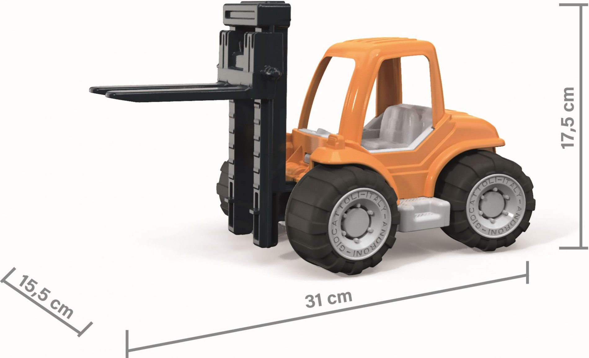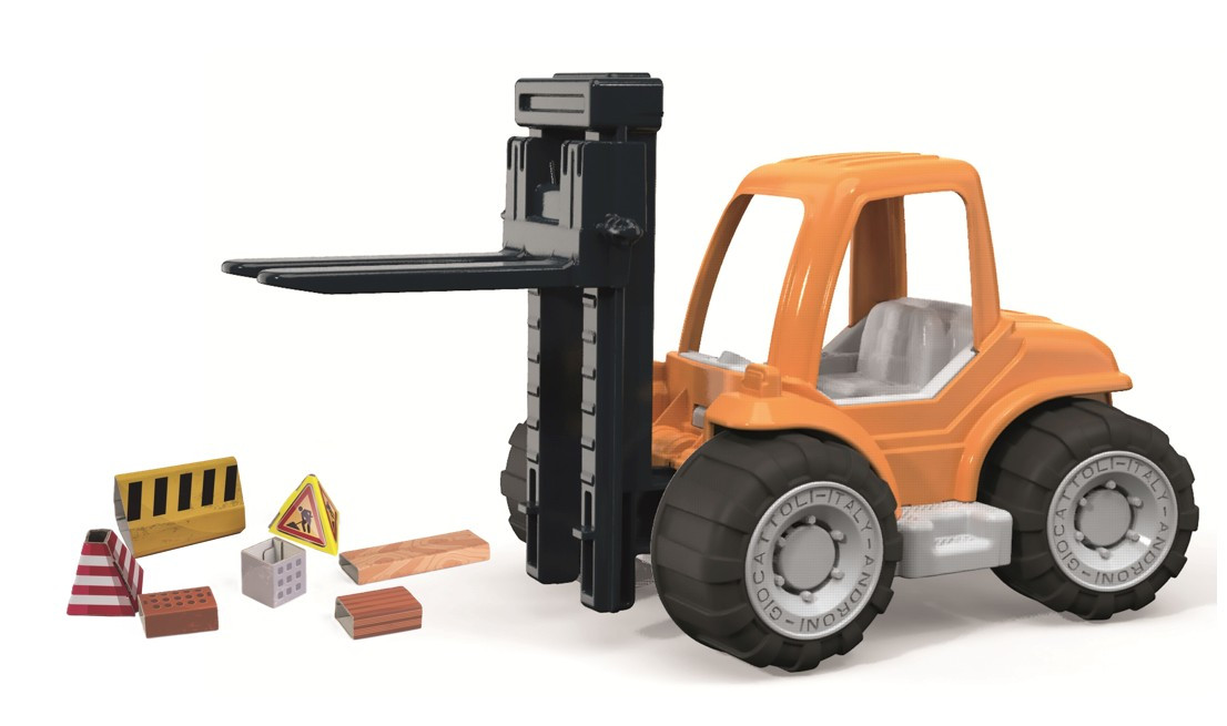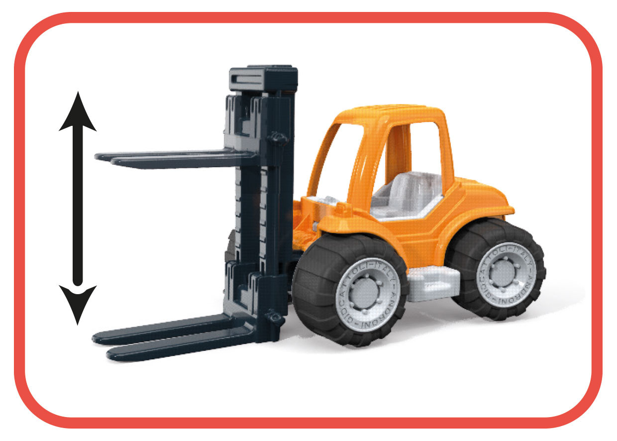 Plastový vysokozdvižný vozík z radu Millenlium s pogumovanými kolesami je odolná hračka pre deti. Má pohyblivú zdvíhaciu vidlicu, ktorá umožňuje realistickú manipuláciu s nákladom a podporuje fantáziu pri hre. Súčasťou balenia sú aj kartónové bloky, ktoré umožňujú vytvárať rôzne herné scenáre a podporujú fantáziu a jemnú motoriku. Vyrobené z kvalitných plastov v Taliansku. Rozmery balenia: 32 x 16 x 17,8 cm (d x š x v). Váha: 0,55 kg. Odporúčaný vek od 10 mesiacov.