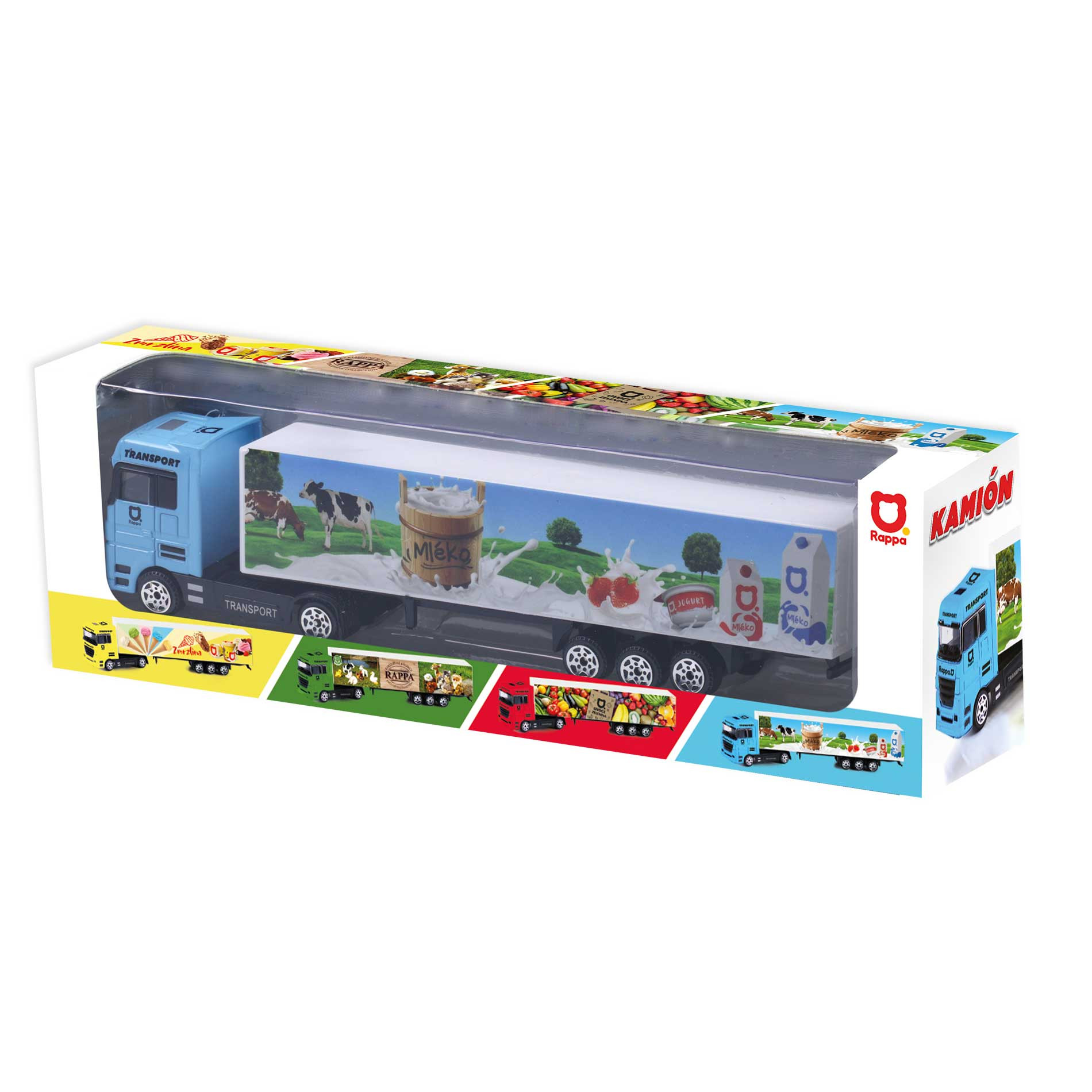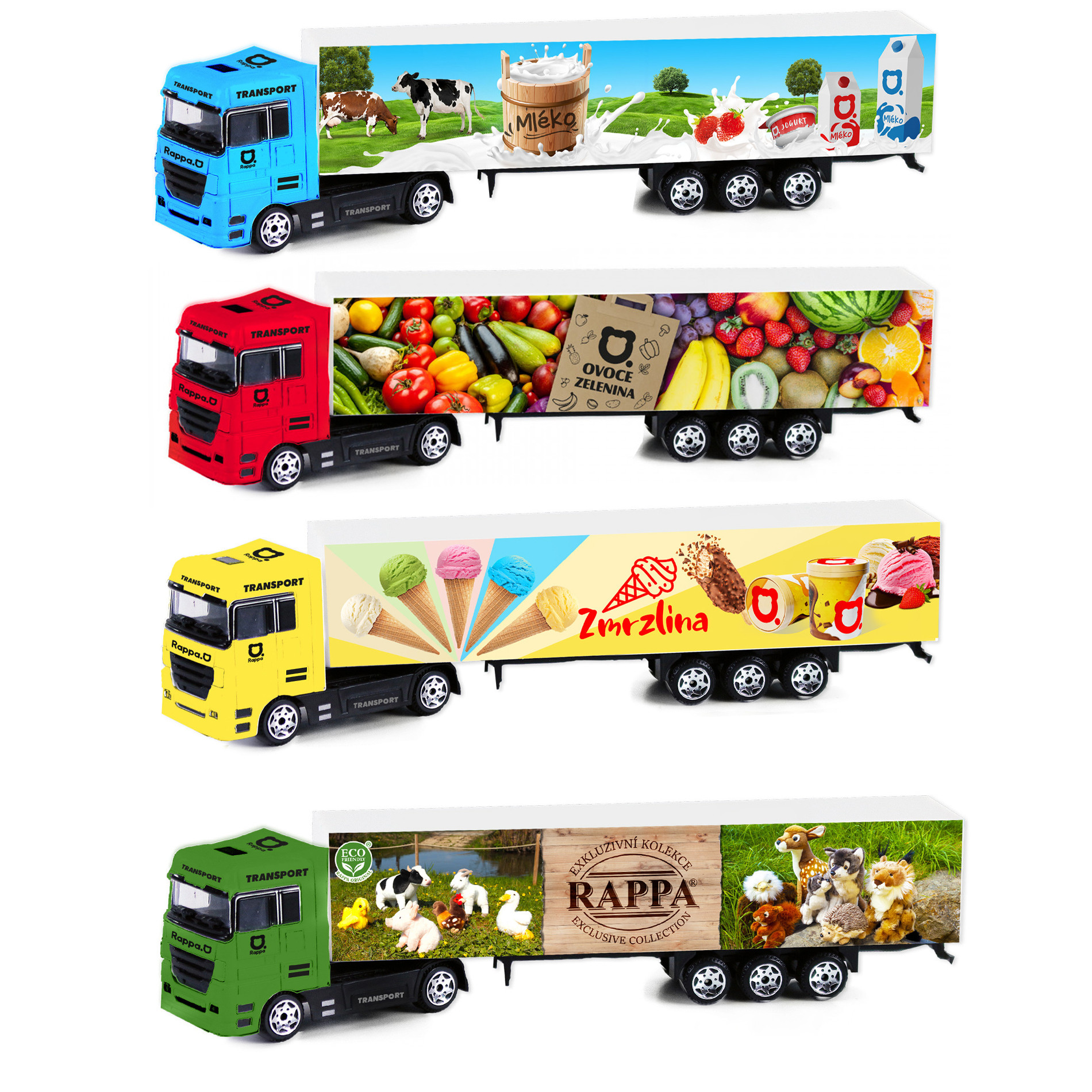 Tento parádny kamión nesmie chýbať v tvojej zbierke klasických autíčok! Model kamiónu 1:87 je vyrobený z kovu, príves je vyrobený z PVC. Model je dlhý cca 20 cm a jazdí na voľný chod. Táto unikátna hračka nadchne všetkých chlapcov! Nie je možné vybrať druh, dodávame podľa skladovej dostupnosti. Cena za kus.
