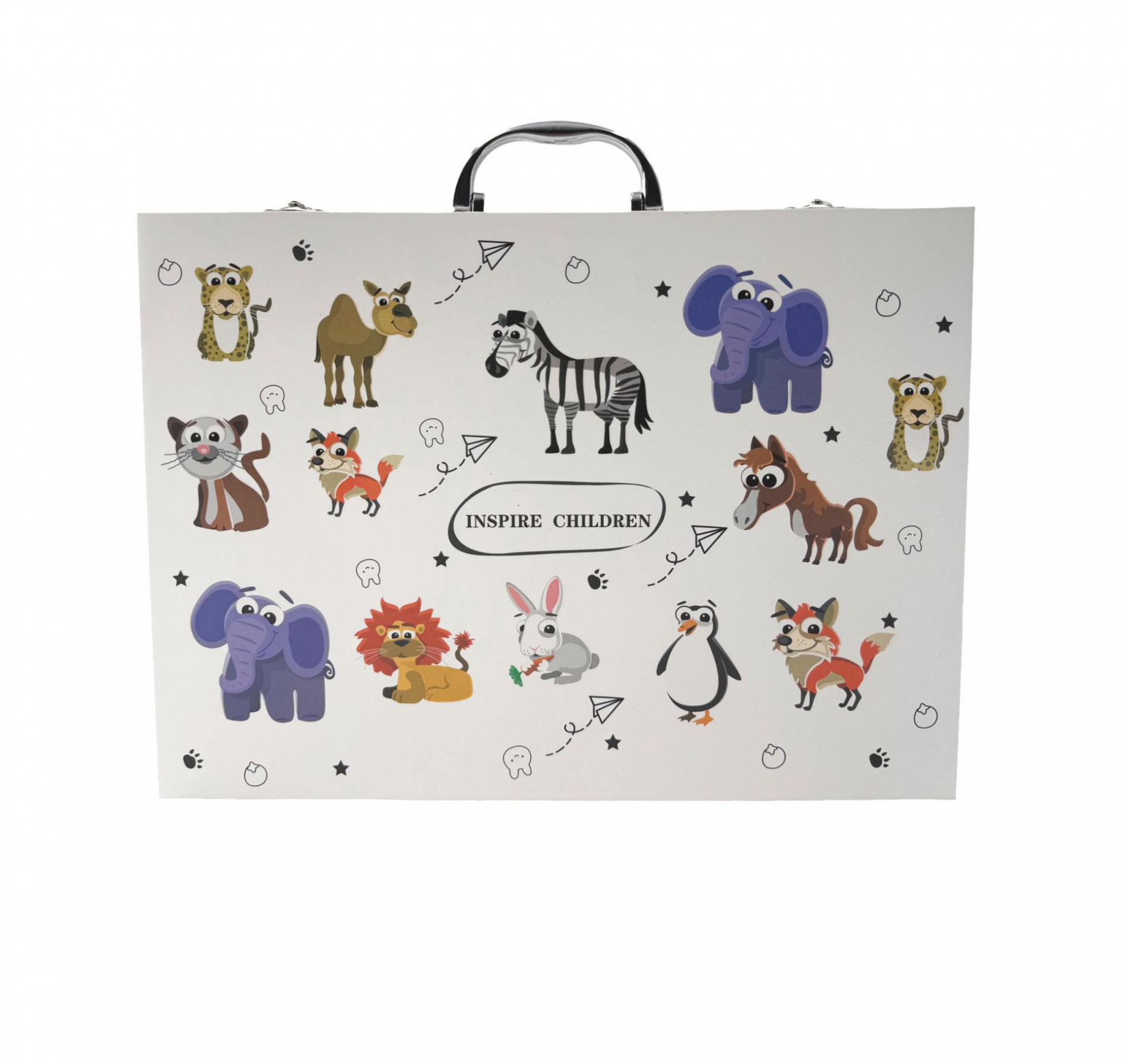 ARTO Výtvarný kufrík - Zvieratká je ideálny darček pre všetkých malých umelcov a milovníkov zvieratiek. V balení sú aj roztomilé omaľovánky so zvieratkami. Podnecuje kreativitu, fantáziu a jemnú motoriku.Celý kufrík je navrhnutý tak, aby bol praktický a ľahko prenosný. Všetky pomôcky majú svoje presne vymedzené miesto, takže sa v kufríku udržuje poriadok a nič sa nestratí. Vďaka pevnému uzáveru sa nemusíš báť, že sa kufrík samovoľne otvorí. A čo sa skrýva vo vnútri tohto zvieracieho kráľovstva? Otvorením kufríka objavíš bohatú výbavu pre malých i veľkých milovníkov prírody a zvierat: Pastelky: Sada farebných pasteliek v prírodných i pestrých odtieňoch, ktoré hladko kĺžu po papieri a umožnia ti vykresliť aj tie najjemnejšie detaily srsti, peria alebo šupín. Obojstranné fixky: väčších plôch. S nimi oživíš farebné perie papagája, pruhy zebry alebo škvrny dalmatínca. Z jednej strany majú fixky tenký hrot a z druhej ako zvýrazňovač. Vysúvacie voskovky: Hladké voskovky s bohatou pigmentáciou, ideálne pre nanášanie vrstiev a vytváranie rôznych textúr – od hebkej mačacej srsti po drsnú kôru stromu, na ktorom sedí veverička. tónoch. S trochou vody a štetca môžeš vytvárať jemné tieňovanie a prelínajúce sa farby, ktoré dodajú tvojim zvieracím portrétom živosť.