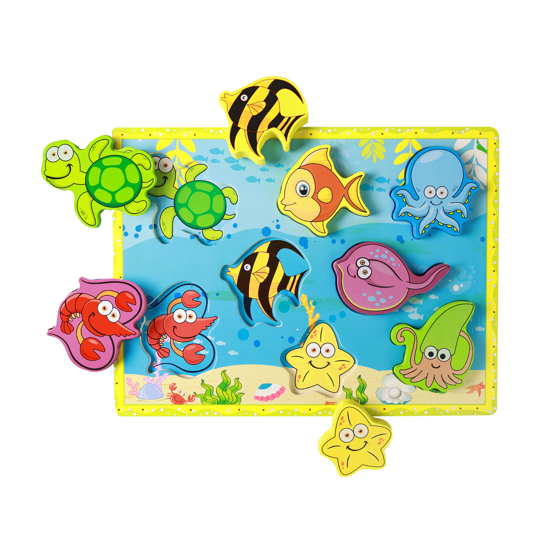 Drevená 3D vkladačka je určená pre tých najmenších. S touto praktickou hrou s motívmi morských živočíchov si užiješ zaručene veľa zábavy! Do príslušných otvorov vkladáš správne tvary a pritom rozvíjaš svoje motorické schopnosti. Nie je možné vybrať druh, dodávame podľa skladovej dostupnosti.