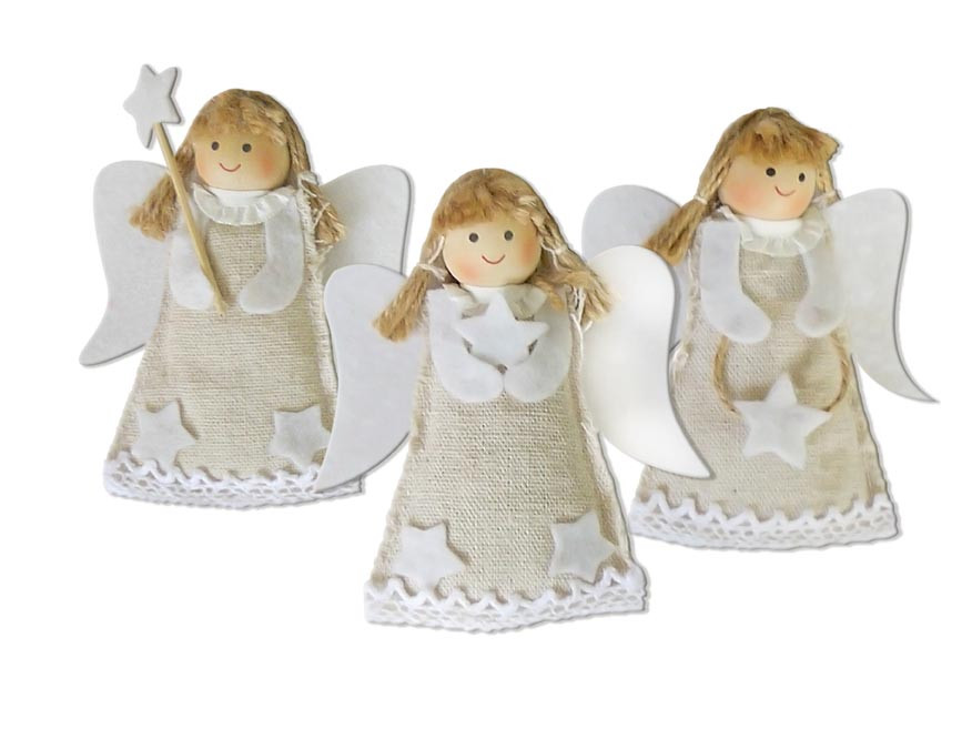 Kreatívna súprava Anjelik. Deti si precvičia svoje pršteky a rozvinú kreatívne myslenie. Jedno balenie obsahuje troch anjelikov. Každý kúsok bude originálny a jedinečný. Môžete si nimi len tak vyzdobiť byt, alebo sa s nimi môžu deti hrať. Všetko je zabalené v peknom darčekovom vrecku z recyklovateľného materiálu.Balenie obsahuje: plsť v tvare anjelikov (na 3 postavičky), stuhu, plstenú výplň, niť, návodNÁVOD: 1/ Do plsteného tela vložte výplň a zošite ho.2/ Zviažte vlasy bielou šnúrkou.3/ Nalepte vlasy na hlavu a hlavu na telo.4/ Nalepte hviezdu na paličku a prilepte ju k telu.5/ Nalepte krídla, ruky, goliere a hviezdy k telu. VAROVANIE: Používajte pod dozorom dospelej osoby, obal odstráňte z dosahu detí, nie je vhodné pre deti do 3 rokov, obsahuje malé časti, nebezpečenstvo prehltnutia a udusenia.