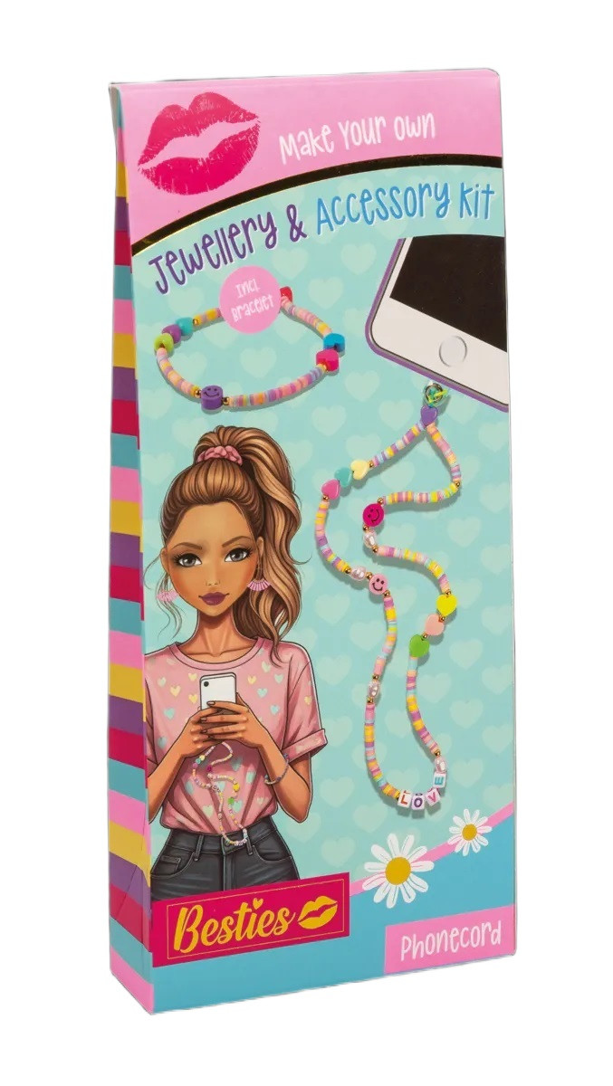 Kreatívny set pomocou ktorého si vyrobíš úžasný náramok a tiež nádherný prívesok/šnúrku, ktorým si môžeš ozdobiť svoj mobilný telefón alebo ho treba venovať svojej najlepšej kamarátke, 18x8 cm, sada obsahuje všetko potrebné na výrobu - korálky, prívesky, povrázky