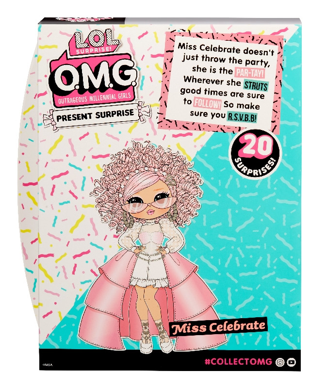 Rozbal módnu bábiku L.O.L. Surprise! OMG Narodeninovú Veľkú ségru Miss Celebrates viac ako 20 prekvapeniami! Skombinuj jej oblečenie a vytvor 3 rôzne módne looky. Obsah balenia: 1 OMG Veľká ségra Miss Celebrate, 20 prekvapenie. Veľkosť postavičky cca 23 cm.