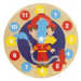 Nádherné drevené detské hodiny s priemerom 14 cm, s touto šikovnou pomôckou sa deti naučia spoznávať čas na ručičkových hodnikách lusknutím prsta, farebne označené číslice aj ručičky, uprostred ciferníka je krásny obrázok s hasičom