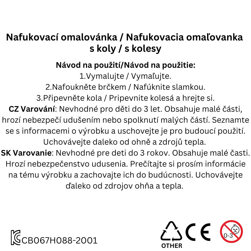 Nafukovacia omaľovánka sanitka poslúži všetkým malým záchranárom, ktorí bojujú o životy ostatných. Môžu sa s ním farebne pohrať, pridať kolesá a môžu vyraziť na cestu. Omaľovánky je možné vyfarbovať čímkoľvek podľa vašich preferencií. Môžete použiť pastelky, farbičky, voskovky, jednoducho čokoľvek.Balení: autíčko, slamka, sada kolies