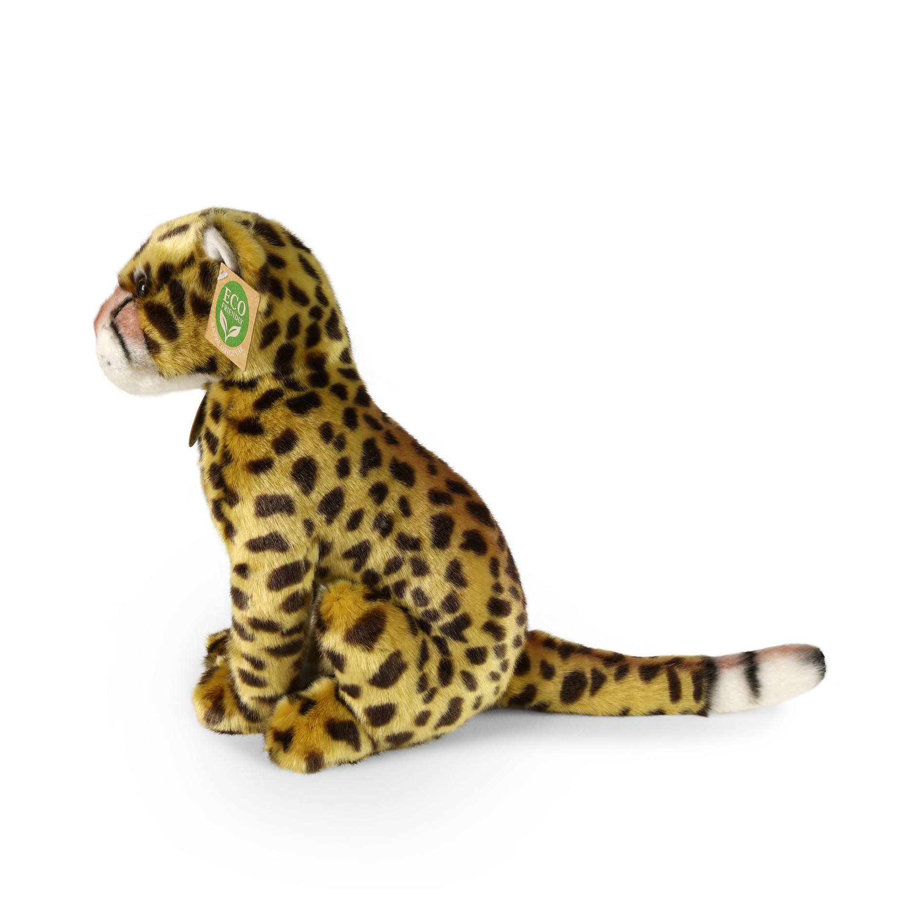 Plyšový gepard meria 28 cm a vďaka tým najkvalitnejším materiálom sa radí do Exkluzívnej kolekcie plyšových hračiek značky Rappa. Vďaka ručnému spracovaniu každého kusu navyše vyzerá ako živý. Prečo označenie ECO-FRIENDLY? Rappa si je vedomá všetkých dopadov na životného prostredia, zameriava sa na udržateľnosť a obmedzenie používania plastov na minimum. Preto je výplň hračiek vyrobená z recyklovaných materiálov, najmä PET fliaš. Tá je však úplne nezávadná a vhodná aj pre deti od narodenia. FUN FACT: Vedeli ste, že gepard urobí krok dlhý až 7-8 metrov a jeho telo sa počas šprintu takmer celé odlepí od zeme?