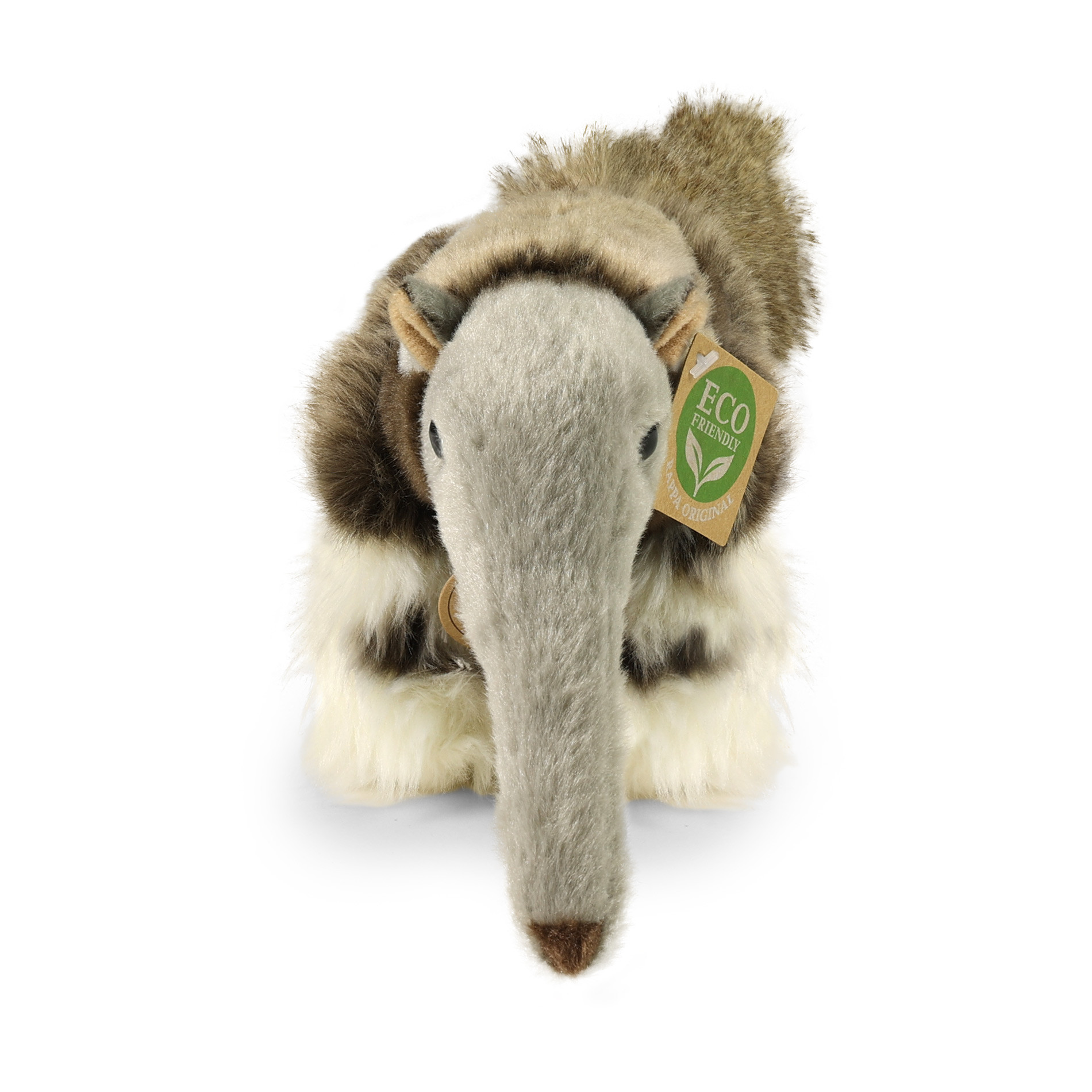 Krásny plyšový mravčiar, je vyrobený z exkluzívne, veľmi kvalitnej plyše a je tak súčasťou exkluzívnej kolekcie plyšových hračiek RAPPA. Čo to vlastne ECO-FRIENDLY znamená? Výplň plyšové hračky je vyrobená z recyklovaných PET fliaš. Tento materiál je úplne bezpečný, na omak nerozoznateľný od štandardnej výplne a plne atestovaný pre bezpečnosť aj tých najmenších. Rozhodli sme sa ísť zelenou cestou čo najmenej zaťažujúci životné prostredie- cestou ECO-FRIENDLY.
