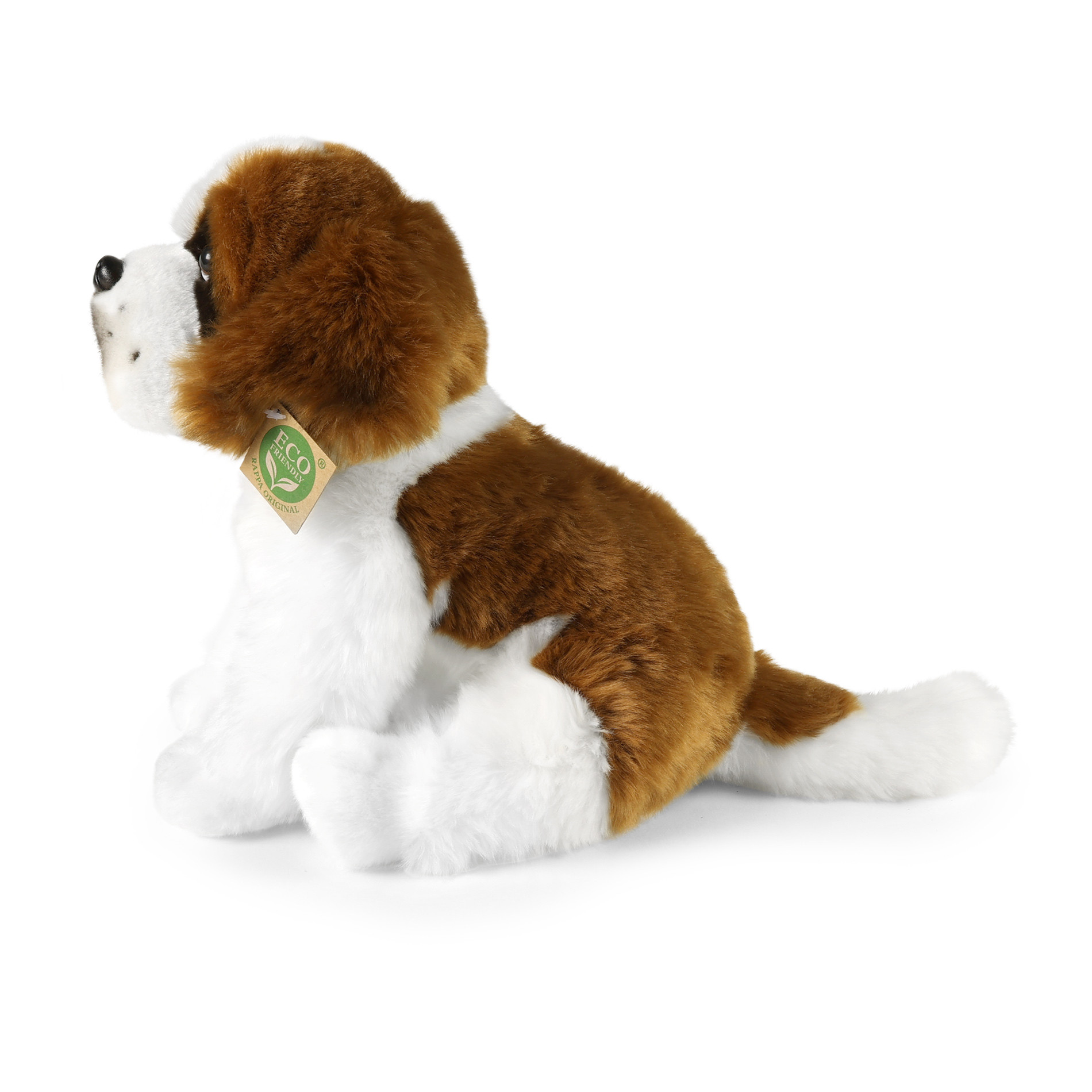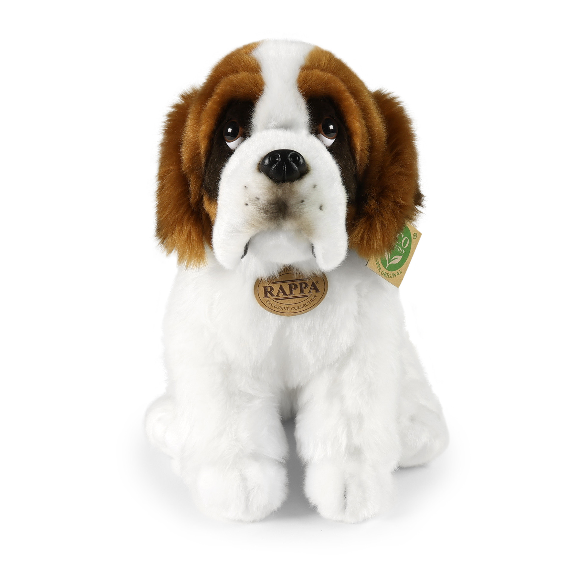 Plyšový pes rasy bernardín meria 30 cm a vďaka tým najkvalitnejším materiálom sa radí do Exkluzívnej kolekcie plyšových hračiek značky Rappa. Vďaka ručnému spracovaniu každého kusu navyše vyzerá ako živý. Prečo označenie ECO-FRIENDLY? Rappa si je vedomá všetkých dopadov na životného prostredia, zameriava sa na udržateľnosť a obmedzenie používania plastov na minimum. Preto je výplň hračiek vyrobená z recyklovaných materiálov, najmä PET fliaš. Tá je však úplne nezávadná a vhodná aj pre deti od narodenia. FUN FACT: Vedeli ste, že dospelí bernardíni môžu vážiť medzi 60–90 kg a merať až 90 cm v kohútiku, čo z nich robí jedno z najväčších psích plemien na svete?