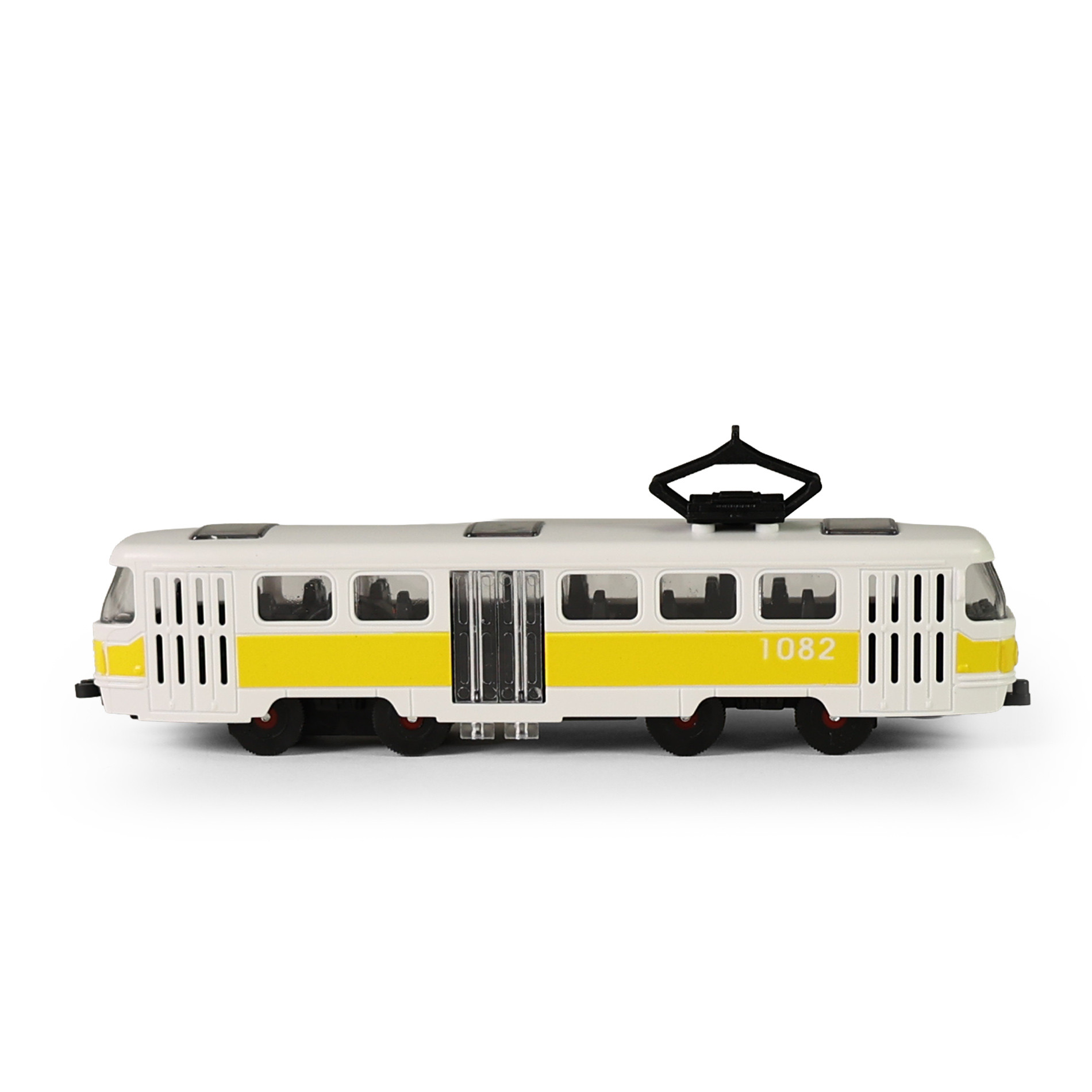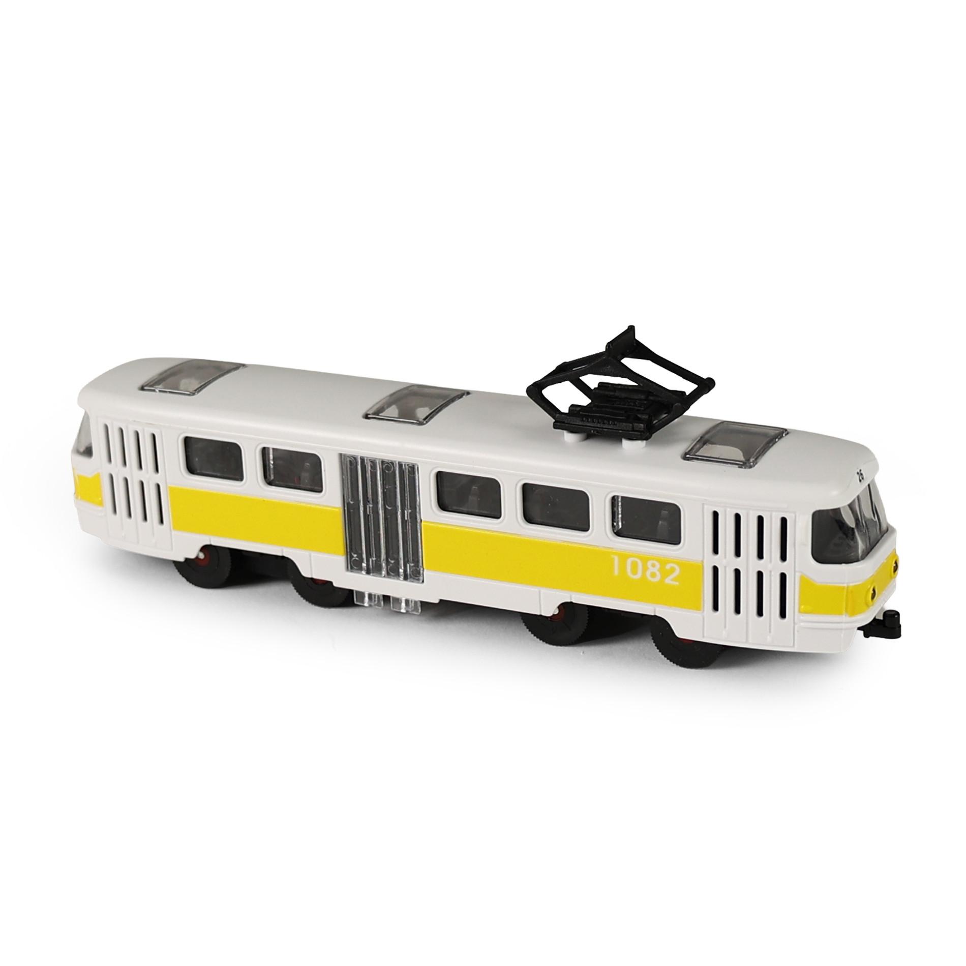 Plastová električka MHD s dĺžkou cca 16 cm poteší všetkých malých milovníkov dopravných prostriedkov. Vďaka zotrvačníkovému pohonu stačí električka jemne postrčiť a sama sa rozbehne, čo prináša veľa zábavy pri hraní. Električka má mechanicky otvárateľné prostredné dvere, ktoré umožňujú ešte viac vtiahnuť deti do hry a vytvárať vlastné príbehy z mestskej premávky.