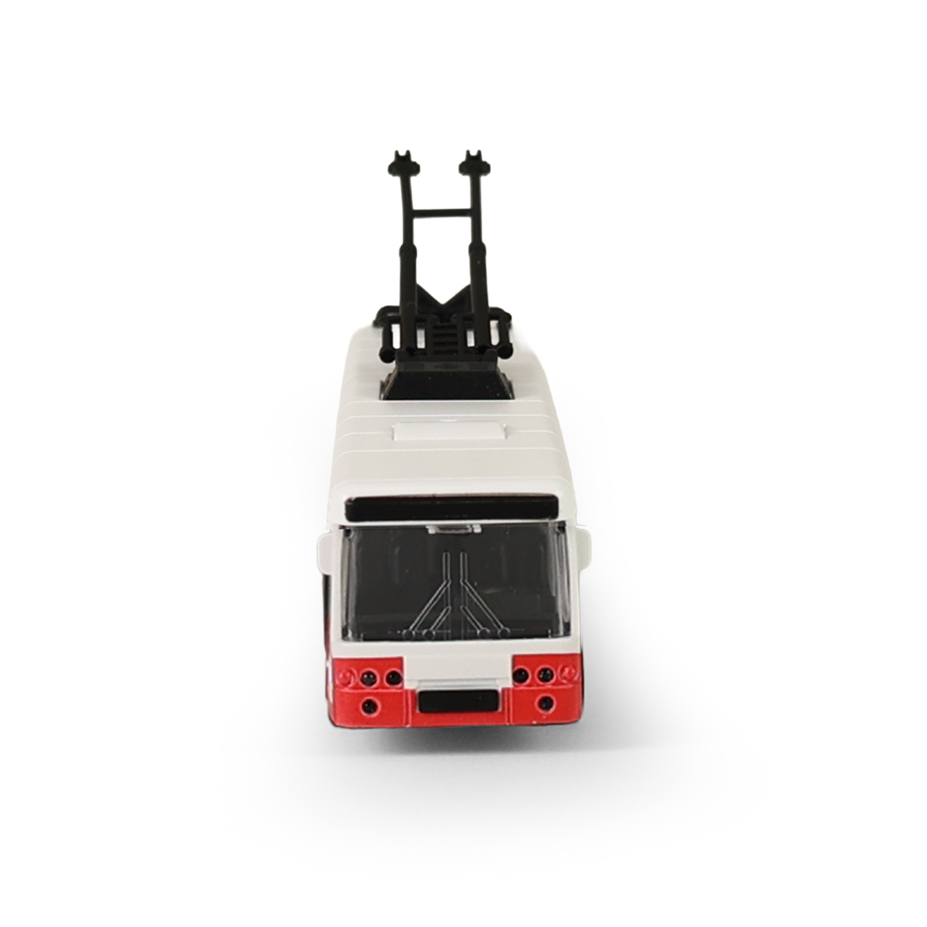 Plastový trolejbus MHD s dĺžkou cca 16 cm poteší všetkých malých milovníkov dopravných prostriedkov. Vďaka zotrvačníkovému pohonu stačí trolejbus jemne postrčiť a sám sa rozbehne, čo prináša veľa zábavy pri hraní. Trolejbus má mechanicky otvárateľné prostredné dvere, ktoré umožňujú ešte viac vtiahnuť deti do hry a vytvárať vlastné príbehy z mestskej premávky.